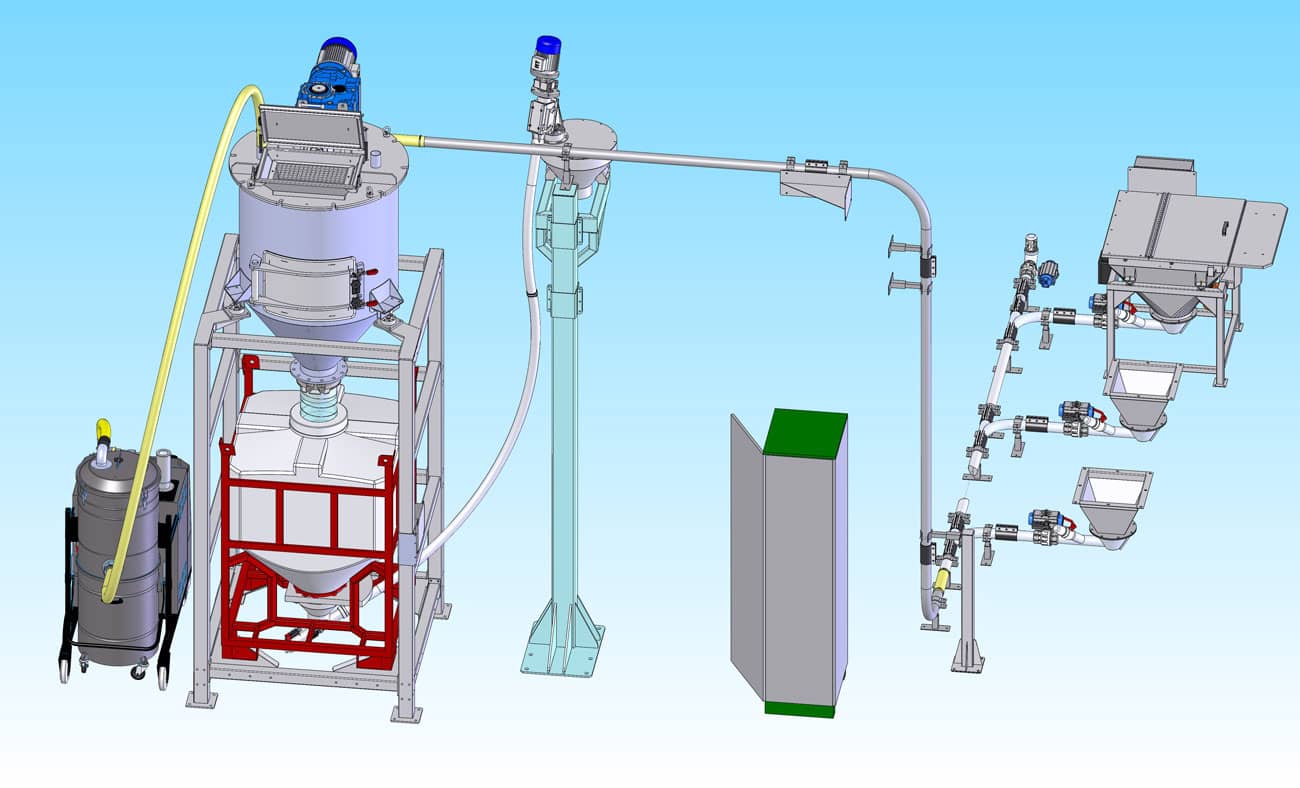 They are used for example when is necessary to charge and weight content into powder mixers with multiple components, starting from different big bags or fully emptying previously batched hoppers.